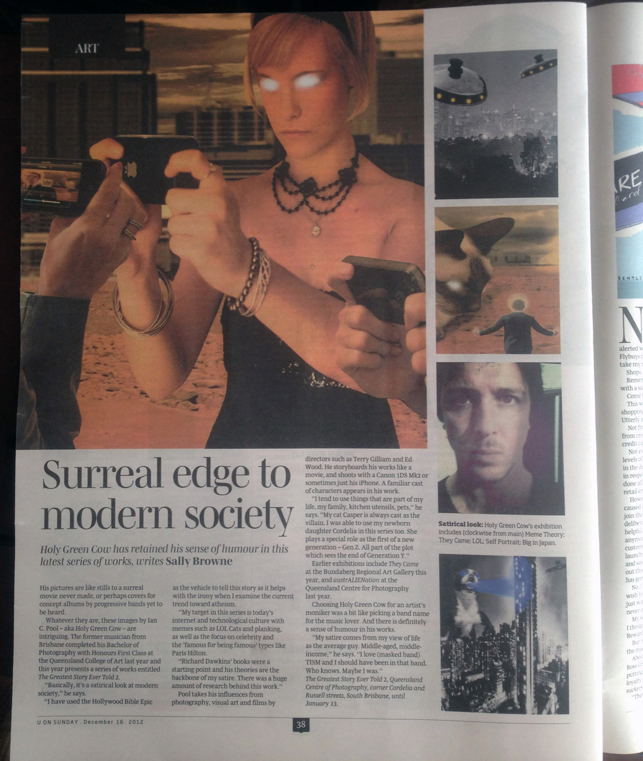 Based in Brisbane, Pool teaches Visual Art at secondary level while maintaining an active exhibition schedule. His work is held in regional galleries and private collections across Australia. HolyGreenCow is an ongoing act of world-building across mediums and across decades—one story at a time.